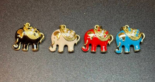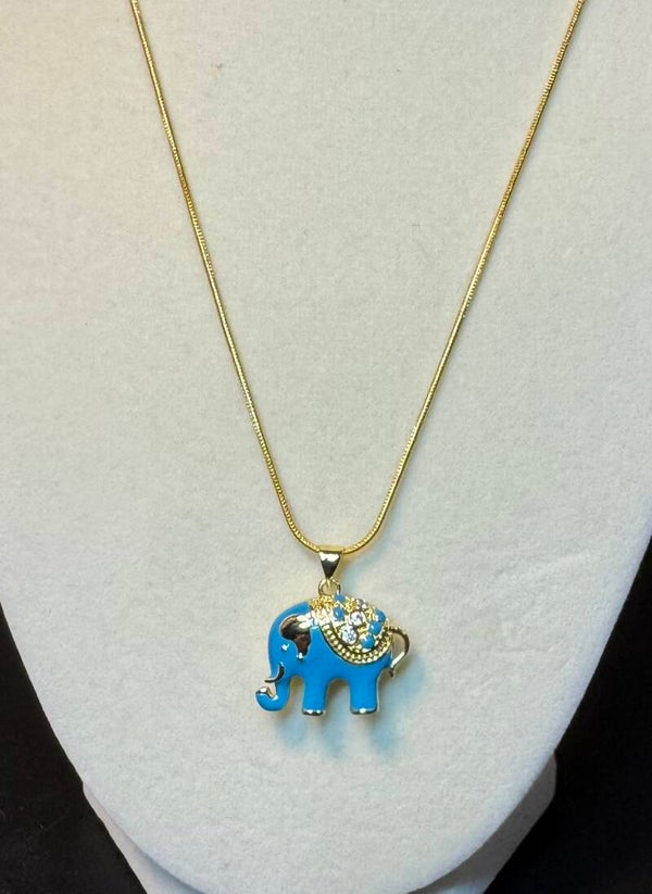 Elegant gold and blue elephant pendant necklace, perfect for adding a touch of charm to any outfit. Available in blue, red, cream or black. 18"