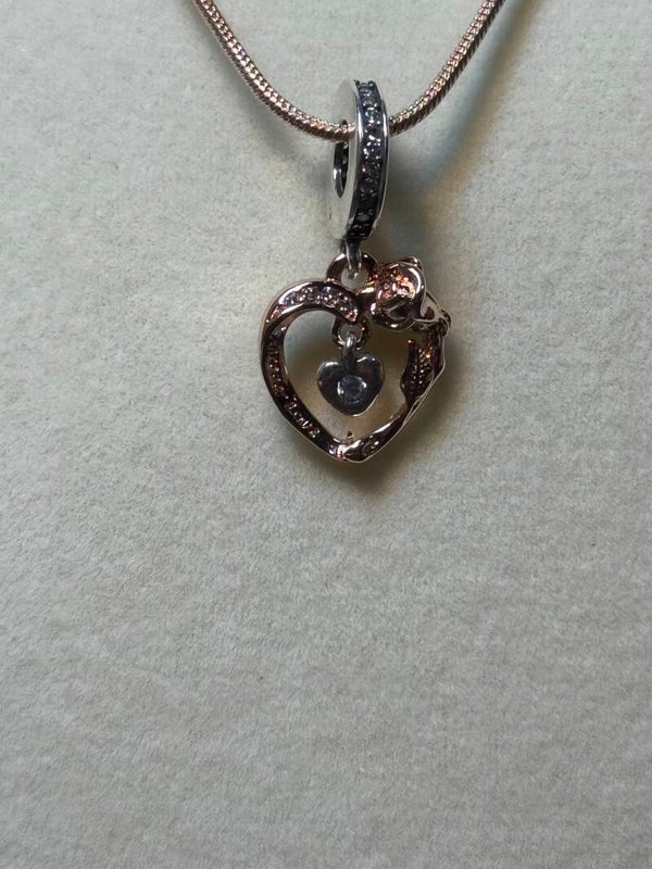 Elegant Heart Pendant Necklace in Rose Gold and Silver