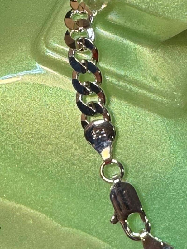 B- Sterling Silver 7.5” 7mm Flat Cuban Chain Bracelet