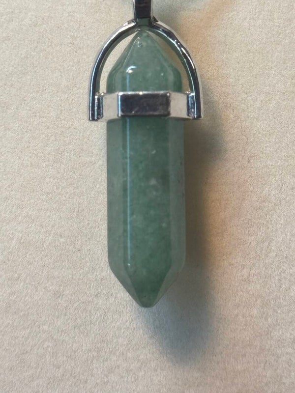 Chic green gemstone pendant with sleek silver detailing. Ideal for adding a touch of elegance.
