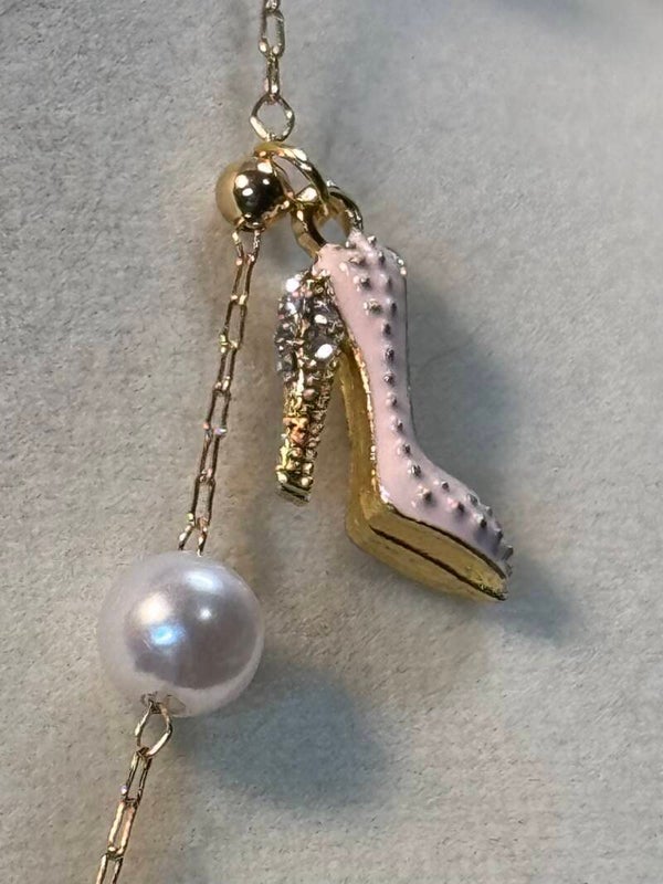 This elegant necklace features a delightful combination of gold and pink tones, adorned with charming floral accents. Perfect for adding a touch of sophistication to any outfit.