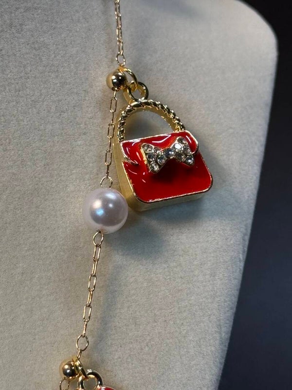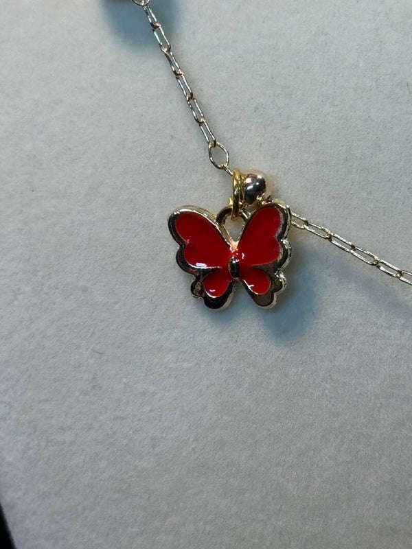 This elegant necklace features a delightful combination of gold and red accents, perfect for adding a touch of charm to any outfit. The butterfly design adds a playful element, making it a versatile piece for any occasion.