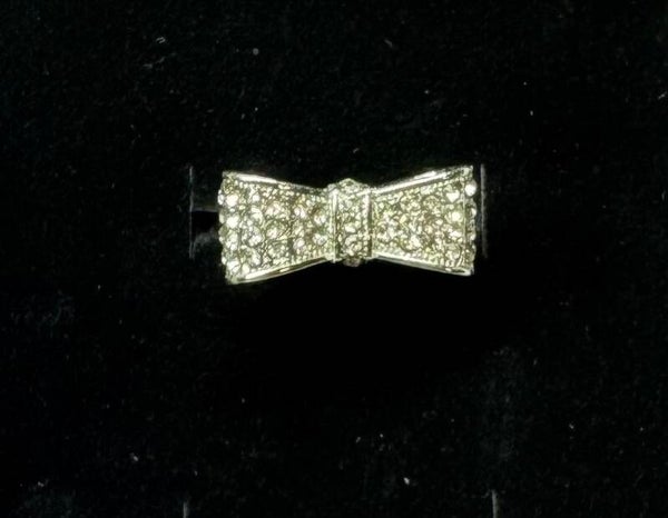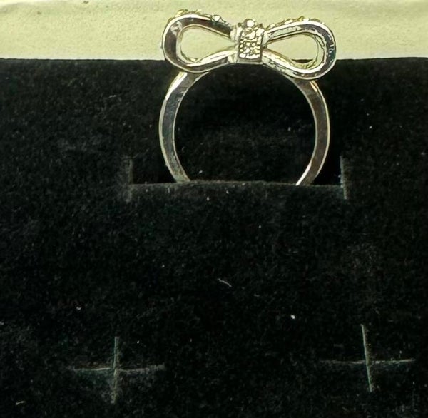 This elegant sterling silver bow ring is adorned with sparkling crystals, perfect for adding a touch of glamour to any outfit. Size 7