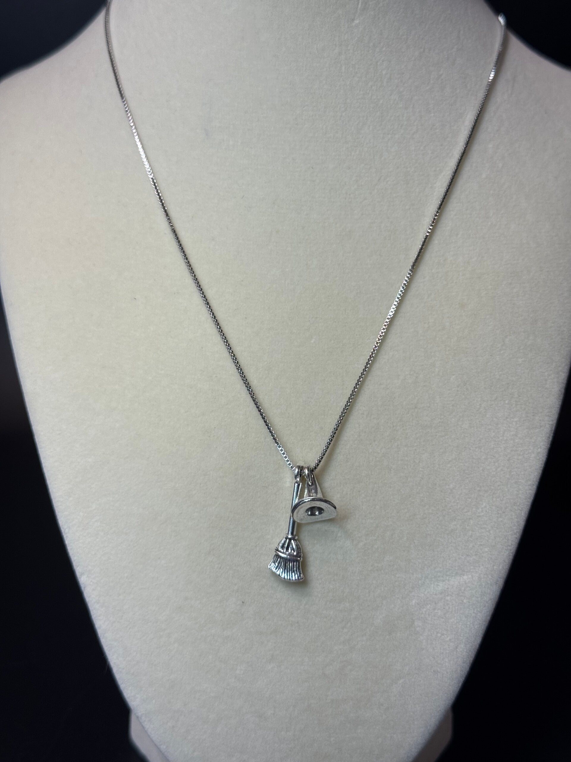 Elegant 18”-24” Sterling Silver Broom and Witch Hat Pendant Necklace