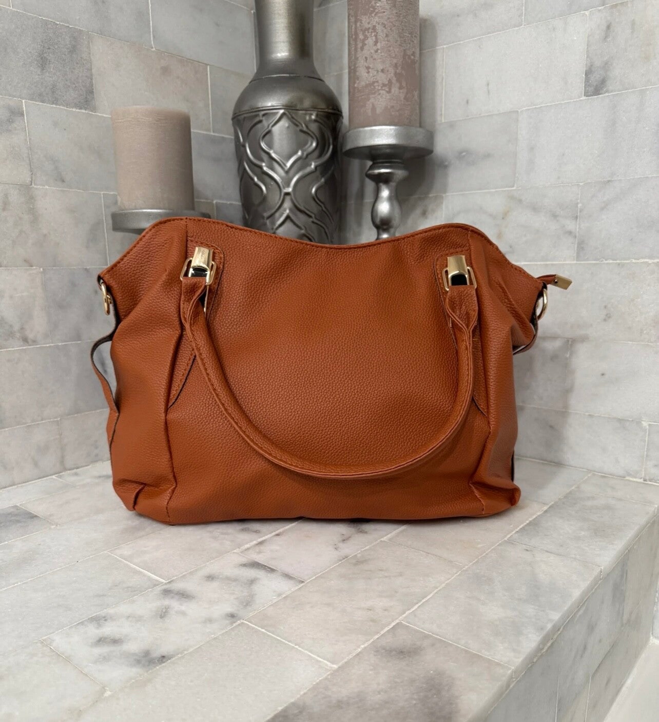 This elegant tan leather handbag is perfect for any occasion. Its sleek design and high-quality material make it a must-have accessory.