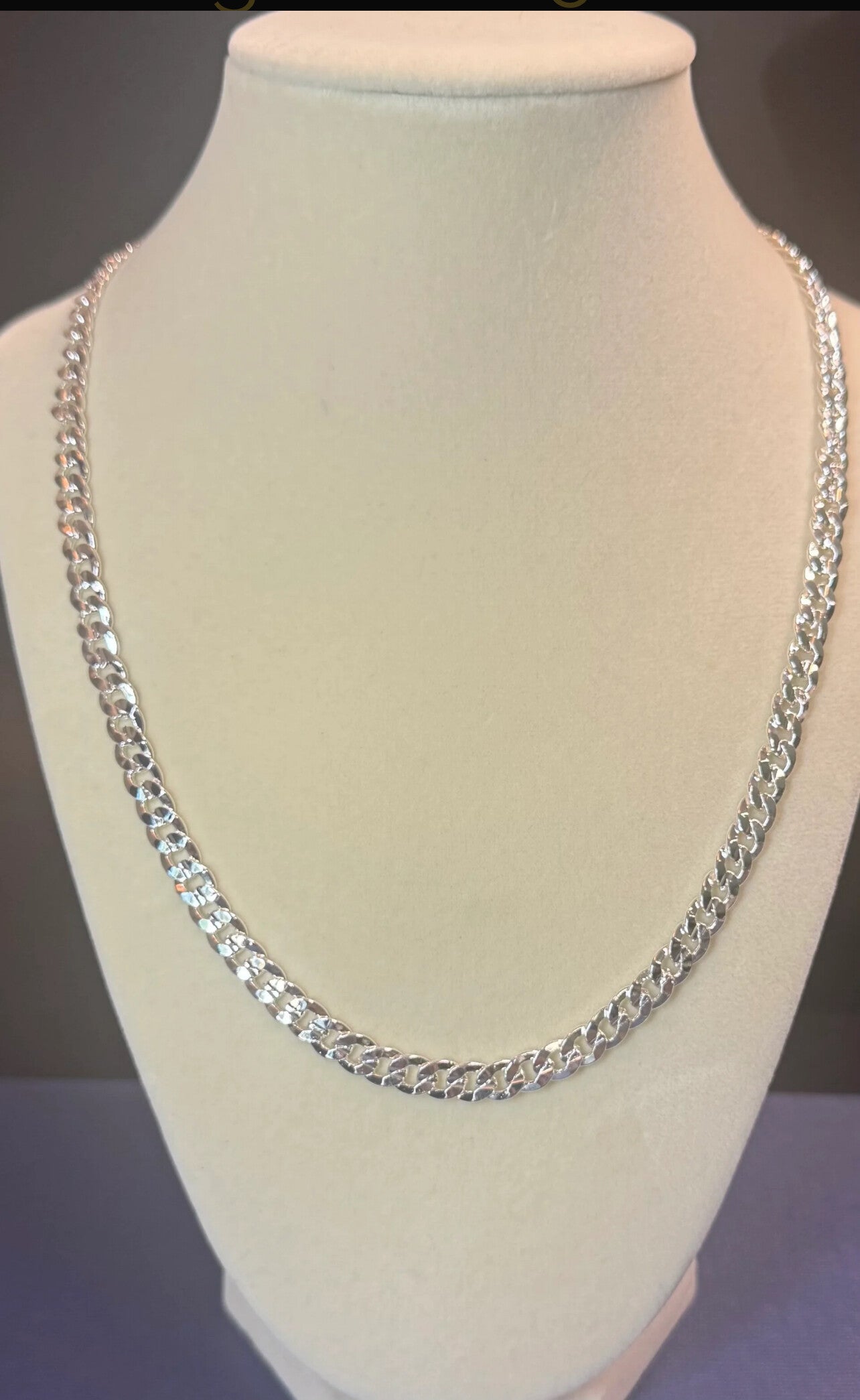 This elegant sterling silver Flat Cuban chain necklace adds a touch of sophistication to any outfit. Perfect for both casual and formal occasions. 24" 5mm
