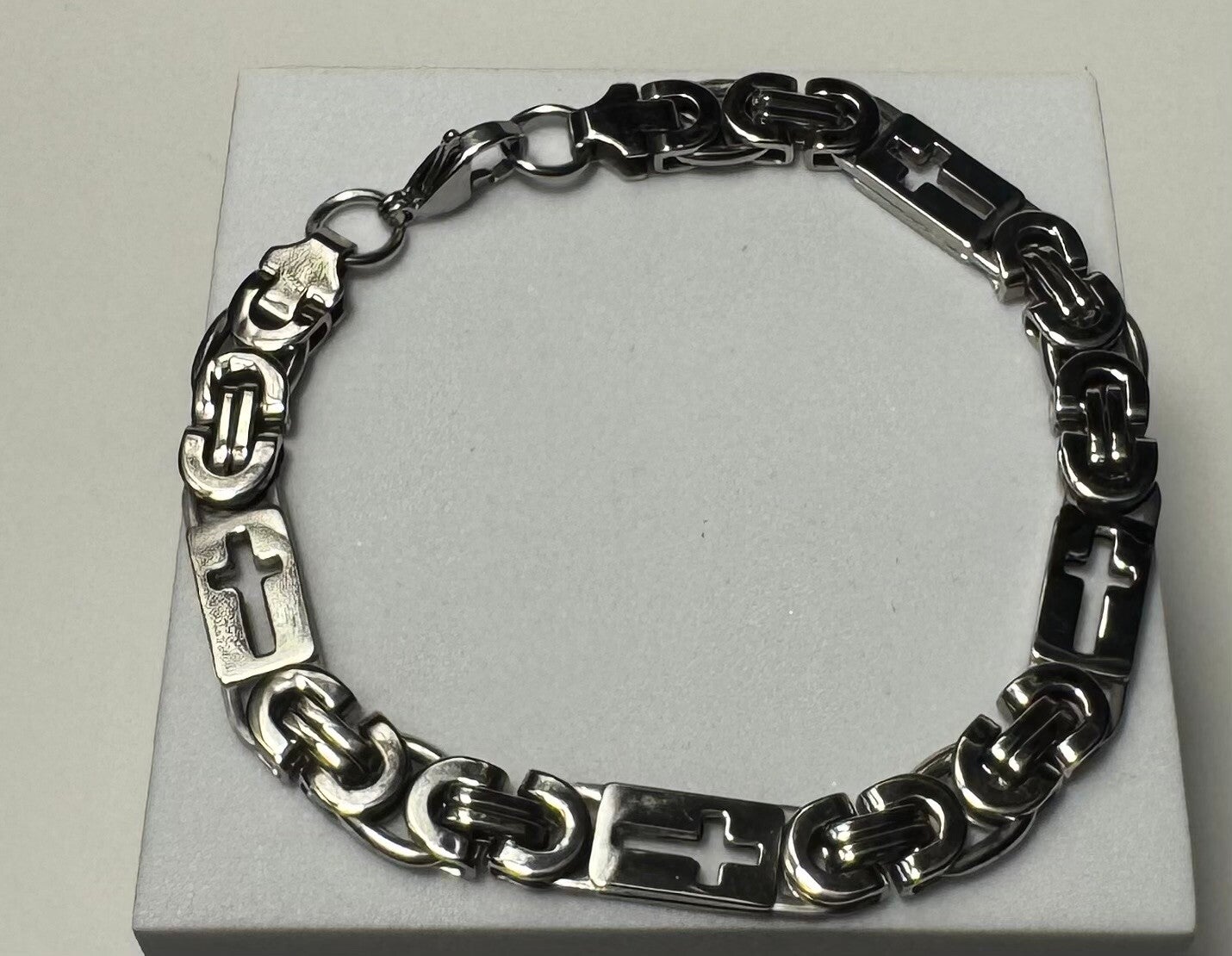 Stainless Steel 8mm Wide Byzantine Chain Link Bracelet.