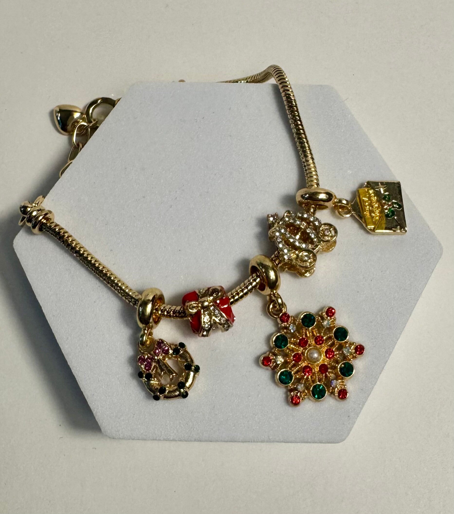 Gold-Tone Festive Charm Bracelet with Red and Green Accents